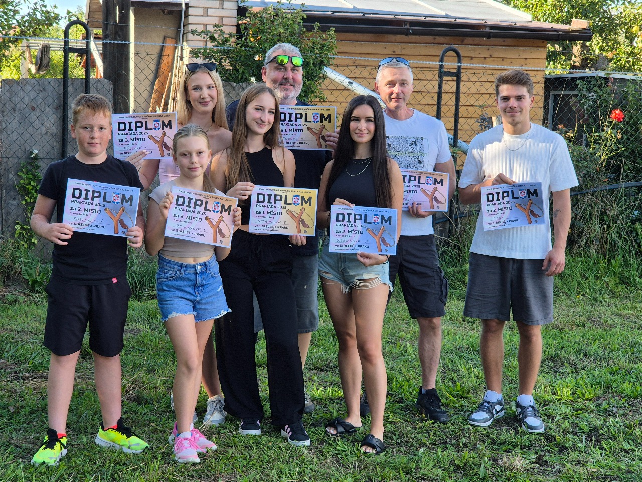 Týden po velkých oslavách jsme uspořádali již tradiční Prakiádu. V letošním roce se odehrávala na novém místě. Pod firmou Nako u Labe kam do budoucna přestěhujeme všechny naše akce (pálení čarodějnic, oslavu dne dětí, Prakiádu apod). Vzhledem ke změně místa konání se dostavilo méně střelců než v předešlých letech, ale to nic neubralo na atraktivitě této soutěže. Opět jsme stříleli ve třech kategoriích – muži, ženy a děti. Kdo přišel a aktivně se zapojil do soutěže, nezaváhal. Na konci na všechny čekaly drobné ceny. Vítězové jednotlivých kategorií jsou vidět na přiložené fotografii.